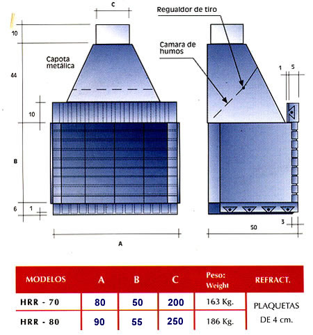 Hogar de ladrillo refractario de 4 cms, con cámara de humos metálica en la que se encuentra el regulador del tiro